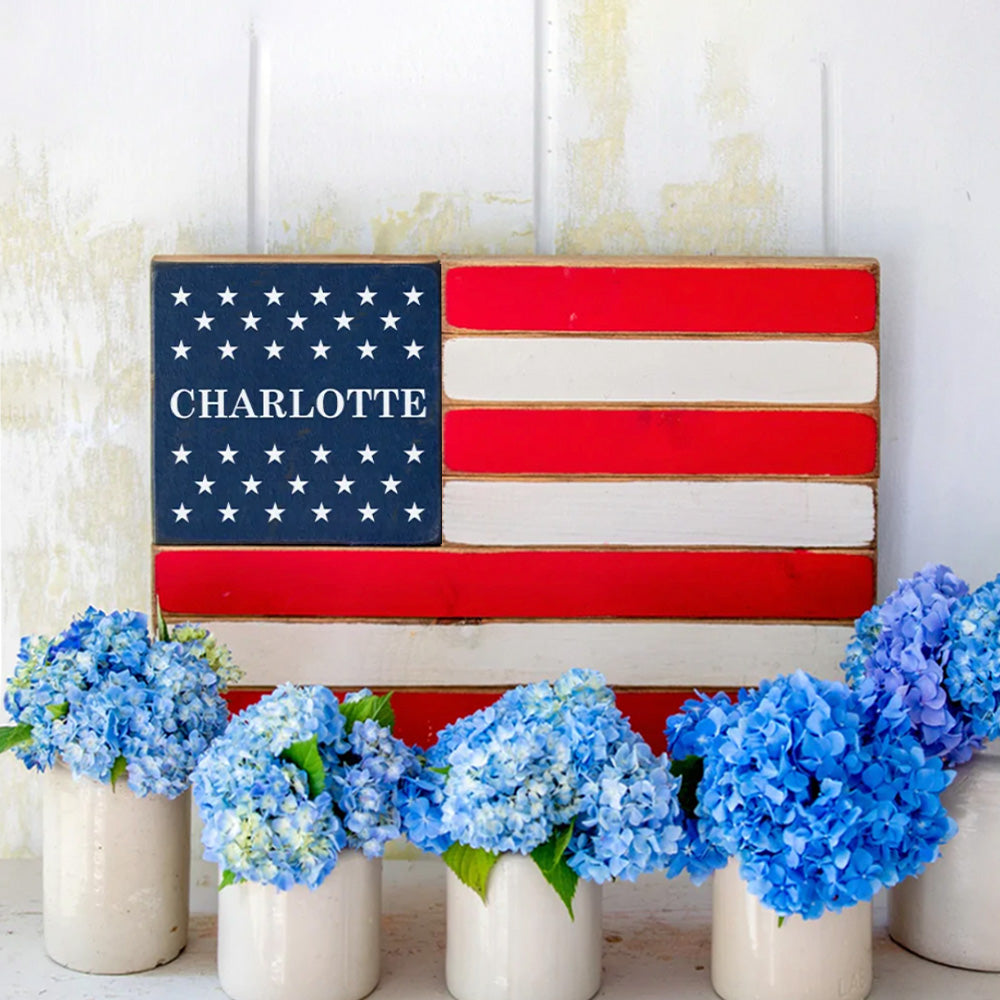 Classic Wooden Personalized American Flag