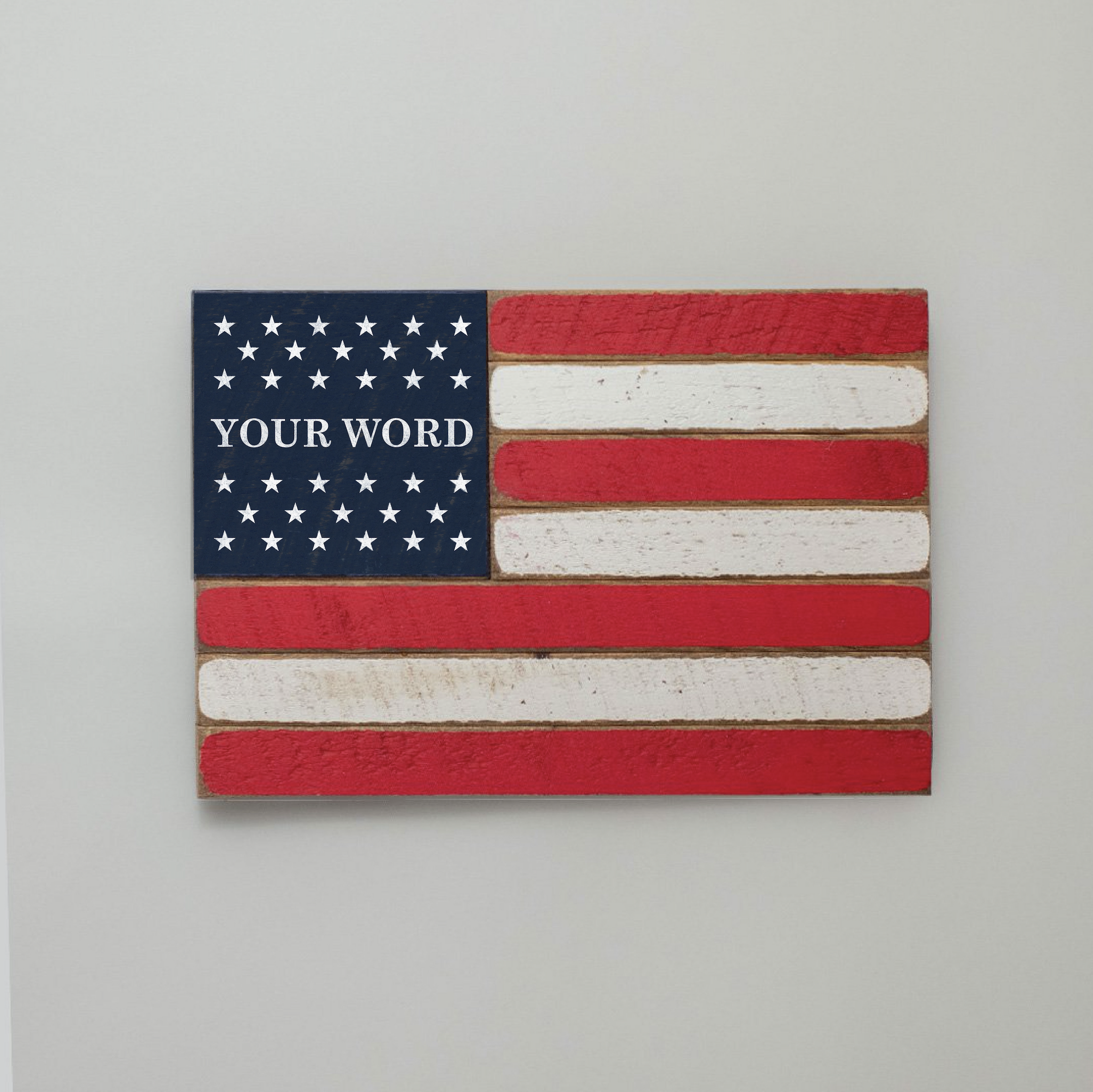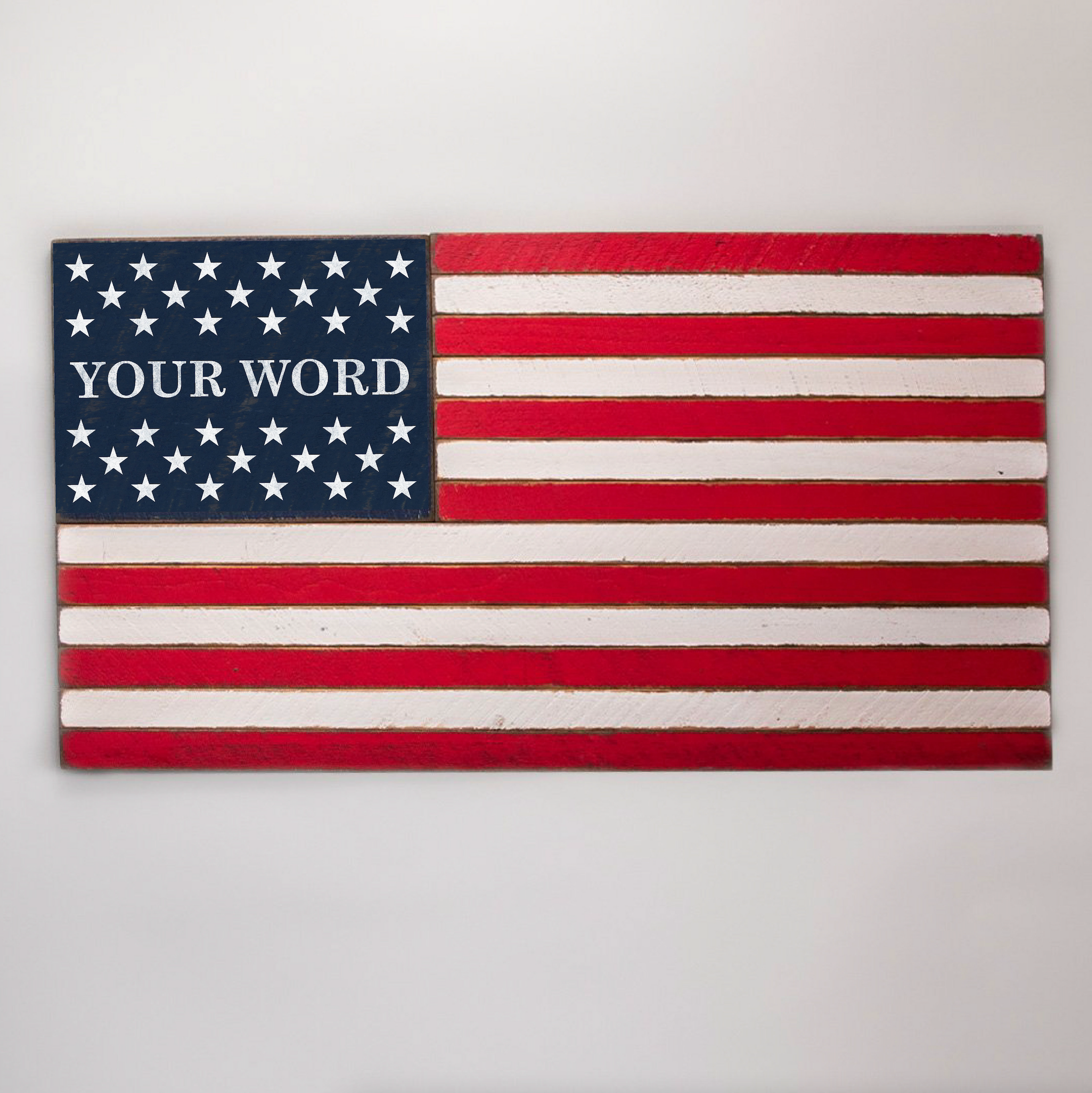 Elevate your home decor with this Classic Wooden Personalized American Flag twine sign, perfect for adding a touch of patriotism to any space. This unique piece allows you to showcase your individuality by customizing it with your chosen word or phrase, making it an ideal gift for loved ones or a special addition to your own collection. Its timeless design complements various interior styles, from modern to traditional, ensuring it fits seamlessly into your living room, office, or entryway.