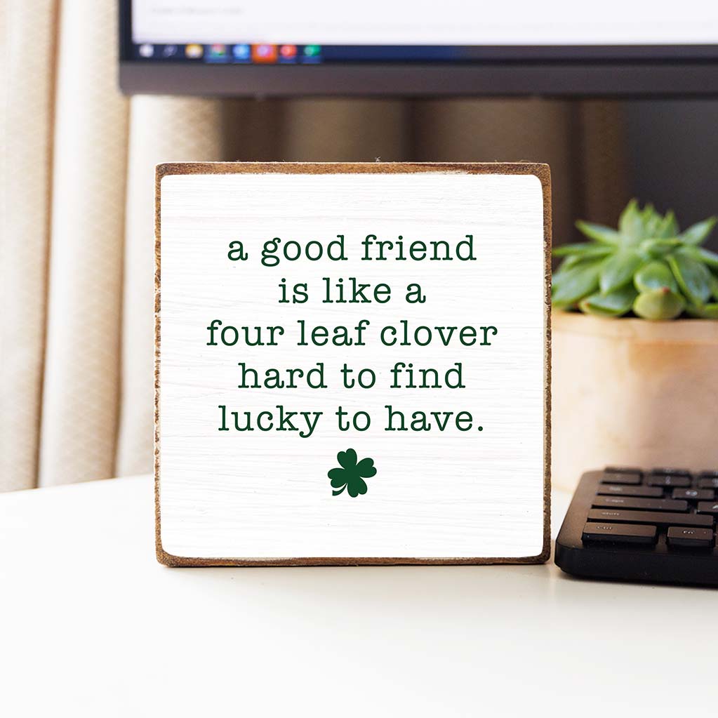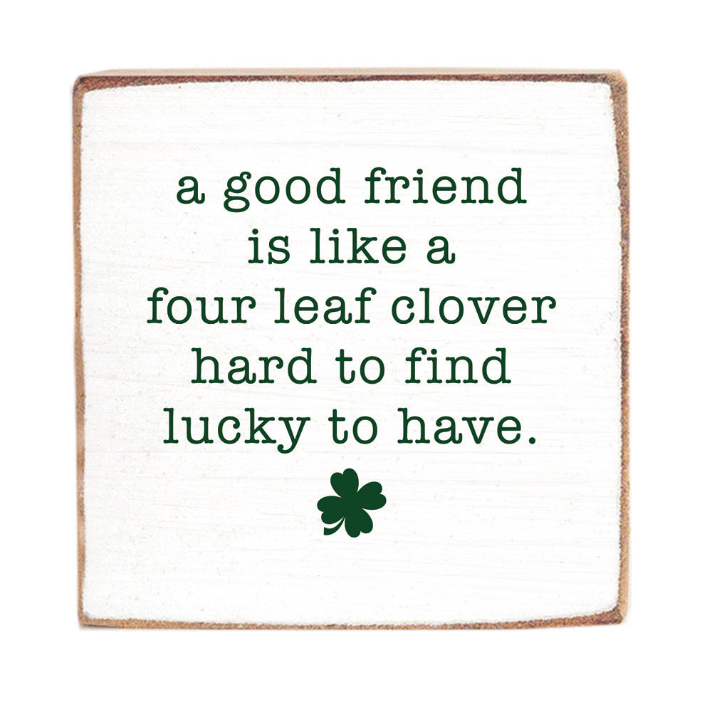 Crafted from high-quality wood, this twine sign features a beautifully printed message in a classic font, complemented by a subtle four-leaf clover design. The neutral color palette ensures it blends seamlessly with various interior styles, from modern to farmhouse. Easy to display, this Square Block Sign is a meaningful way to celebrate the special bonds in your life, making it a cherished piece for years to come.