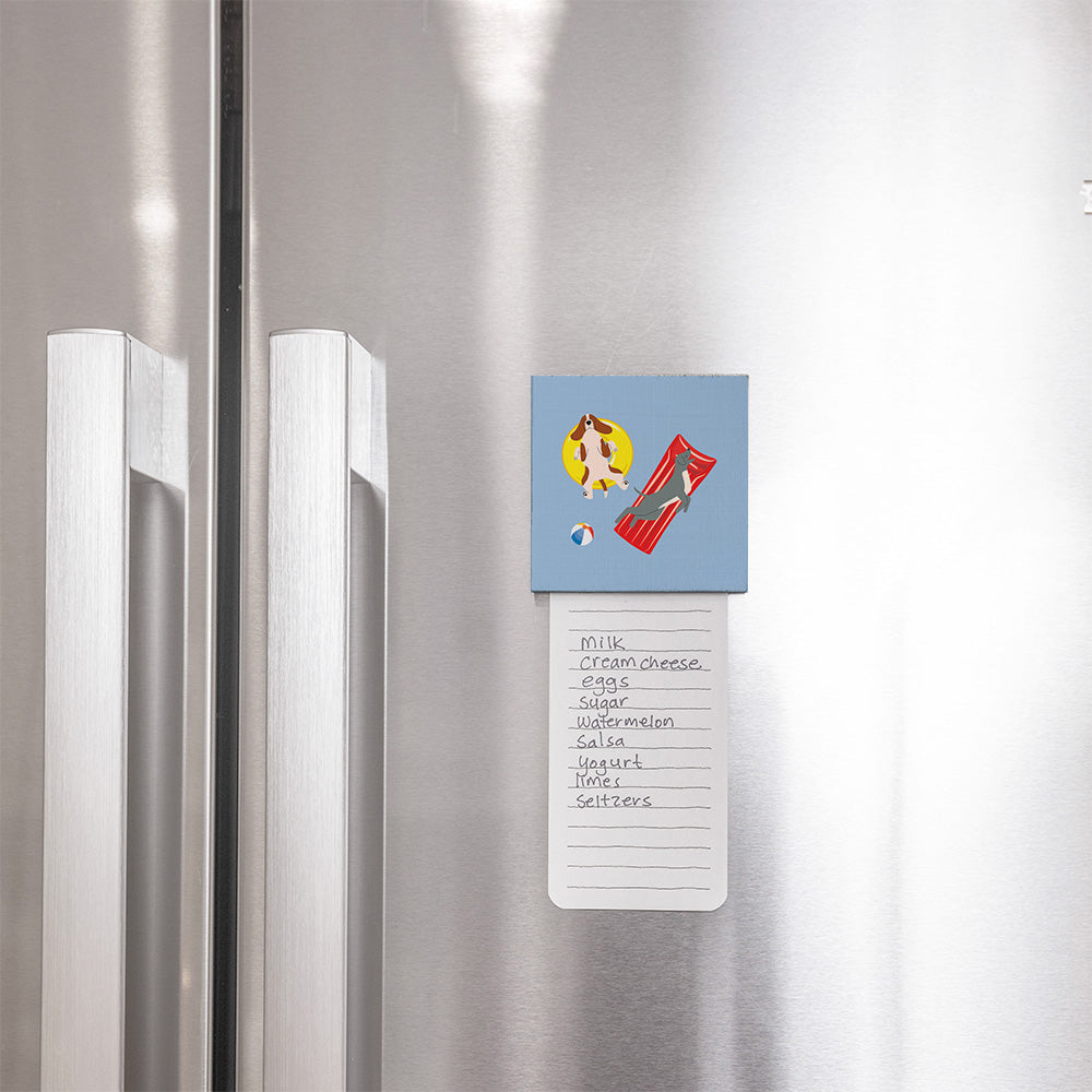 Transform your space with the charming Relaxed Dog Magnet, perfect for adding a touch of whimsy to your home or office. This delightful twine sign captures the essence of carefree days, featuring two adorable dogs lounging on a pool float and a beach ball. Ideal for dog lovers, this magnet brings a playful vibe to your refrigerator or any magnetic surface, making it a great conversation starter.