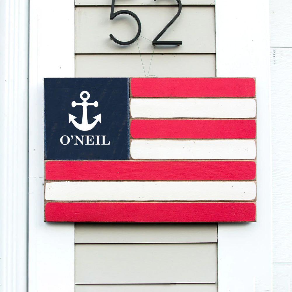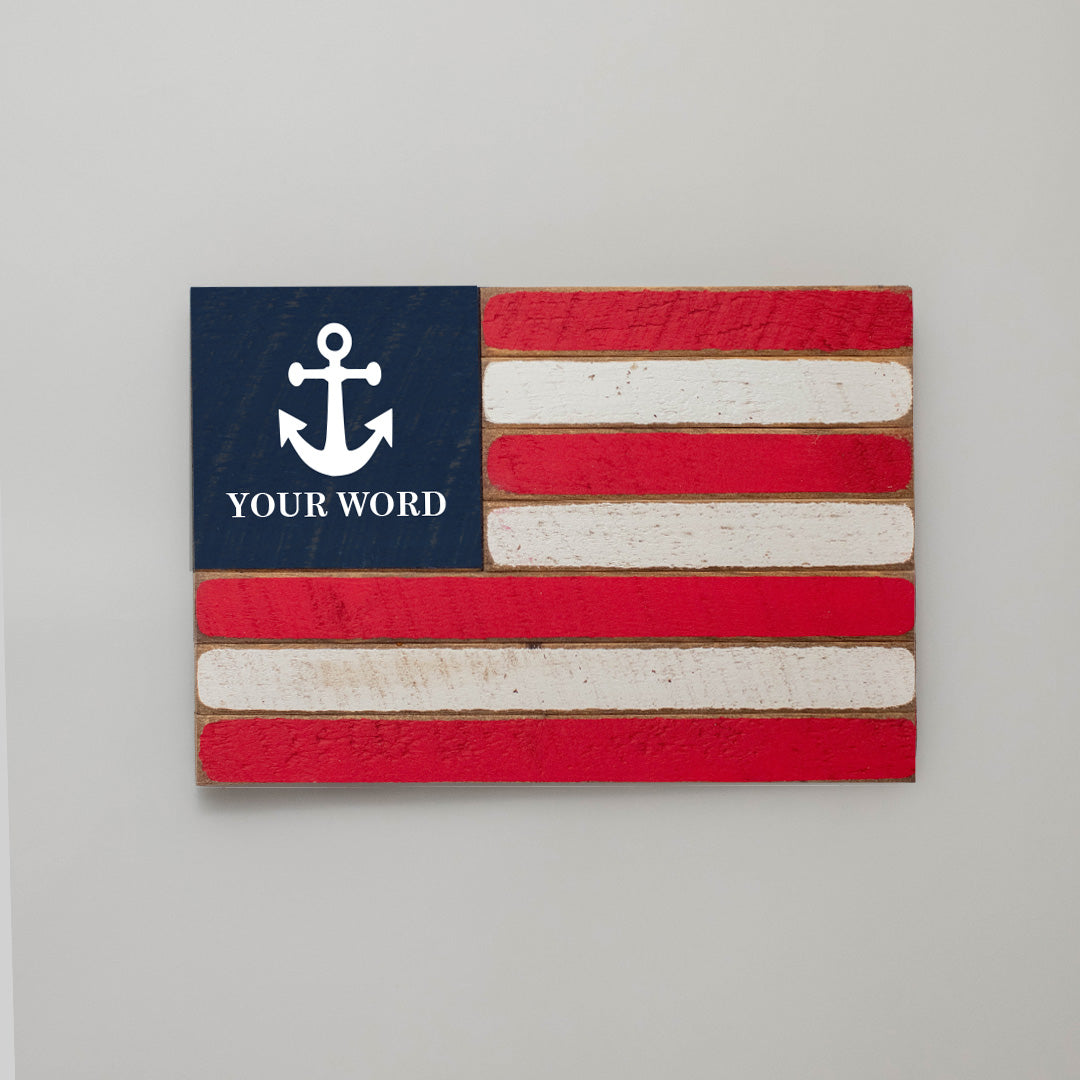Elevate your home decor with this Anchor Wooden Personalized American Flag twine sign, perfect for adding a touch of nautical charm to any space. This unique piece allows you to personalize it with your choice of words, making it a thoughtful gift or a meaningful addition to your own collection. Ideal for living rooms, offices, or entryways, this twine sign effortlessly blends patriotic spirit with coastal vibes, creating a warm and inviting atmosphere.