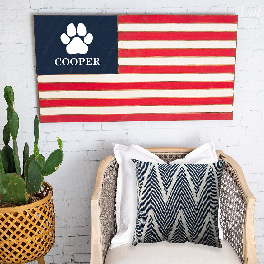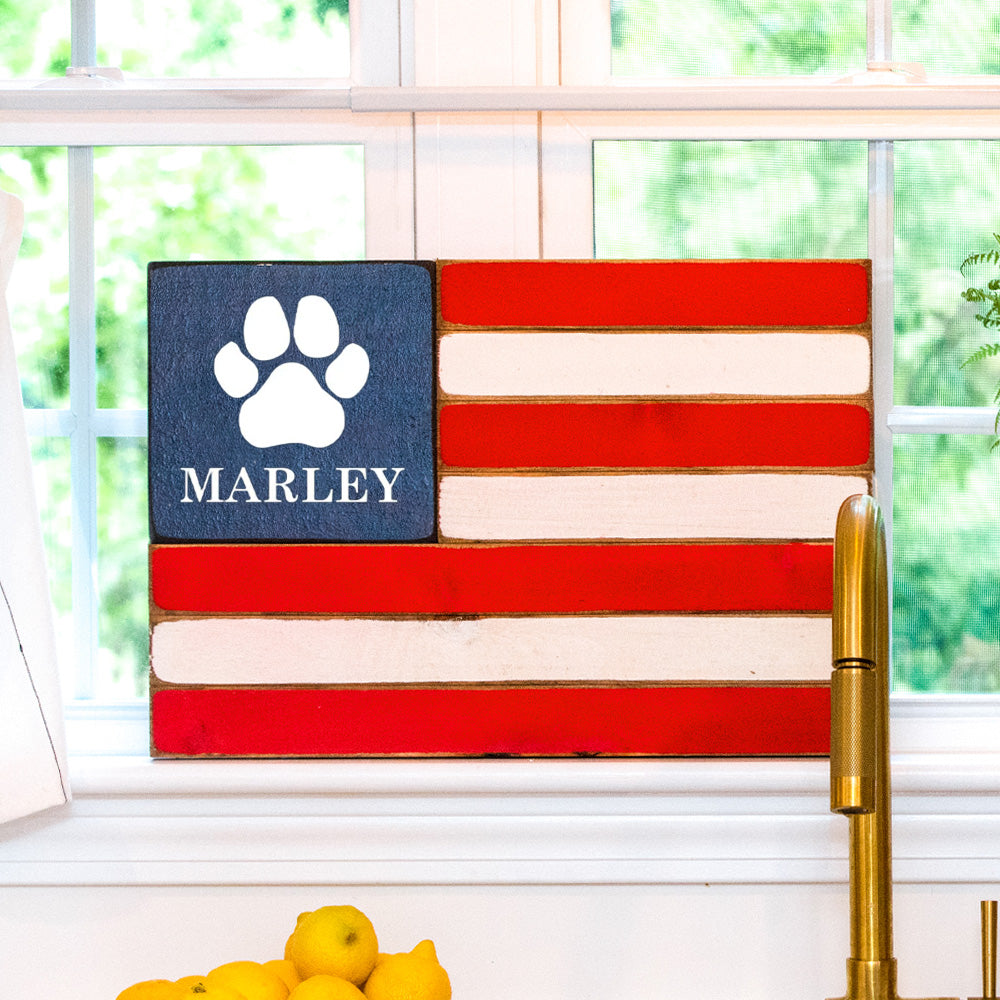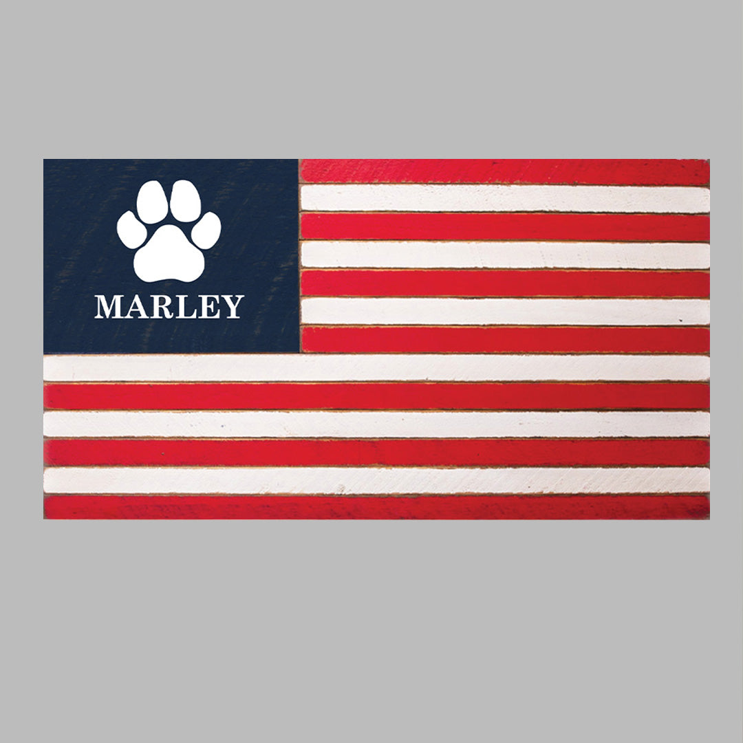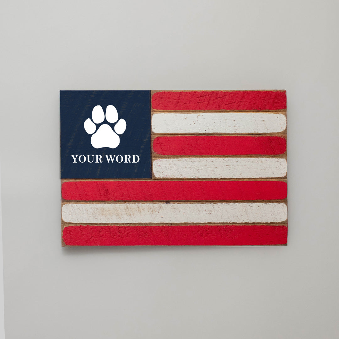 Paw Print Wooden Personalized American Flag