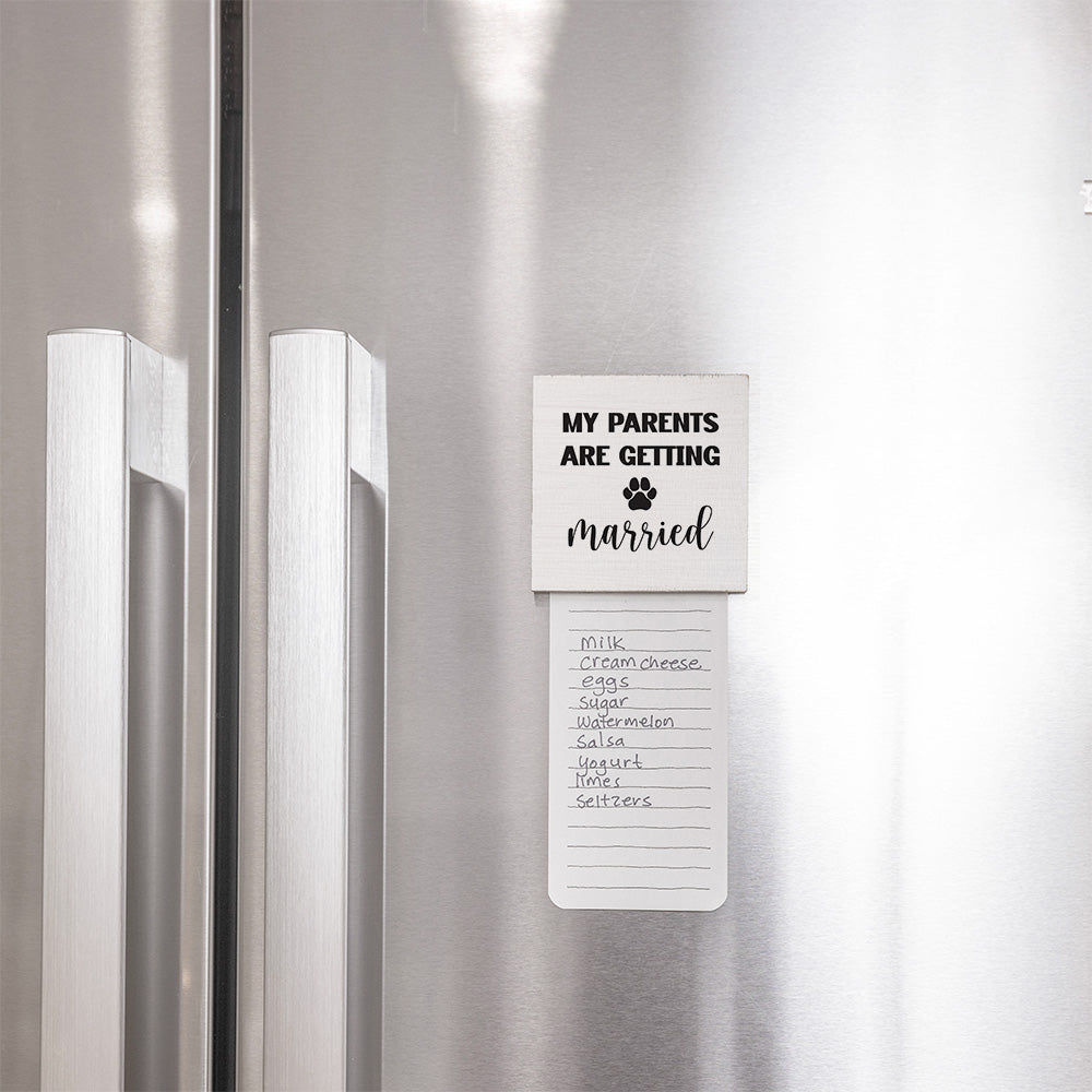 Crafted with care, this twine sign features a playful paw print design, symbolizing the love and unity of your family. The bold, easy-to-read text ensures your message is clear, while the neutral color palette complements any decor. Whether you're planning a wedding or simply want to share the joy, this magnet is a thoughtful keepsake. Keywords: wedding announcement, pet-themed decor, family celebration, magnetic sign, home decor, wedding keepsake.